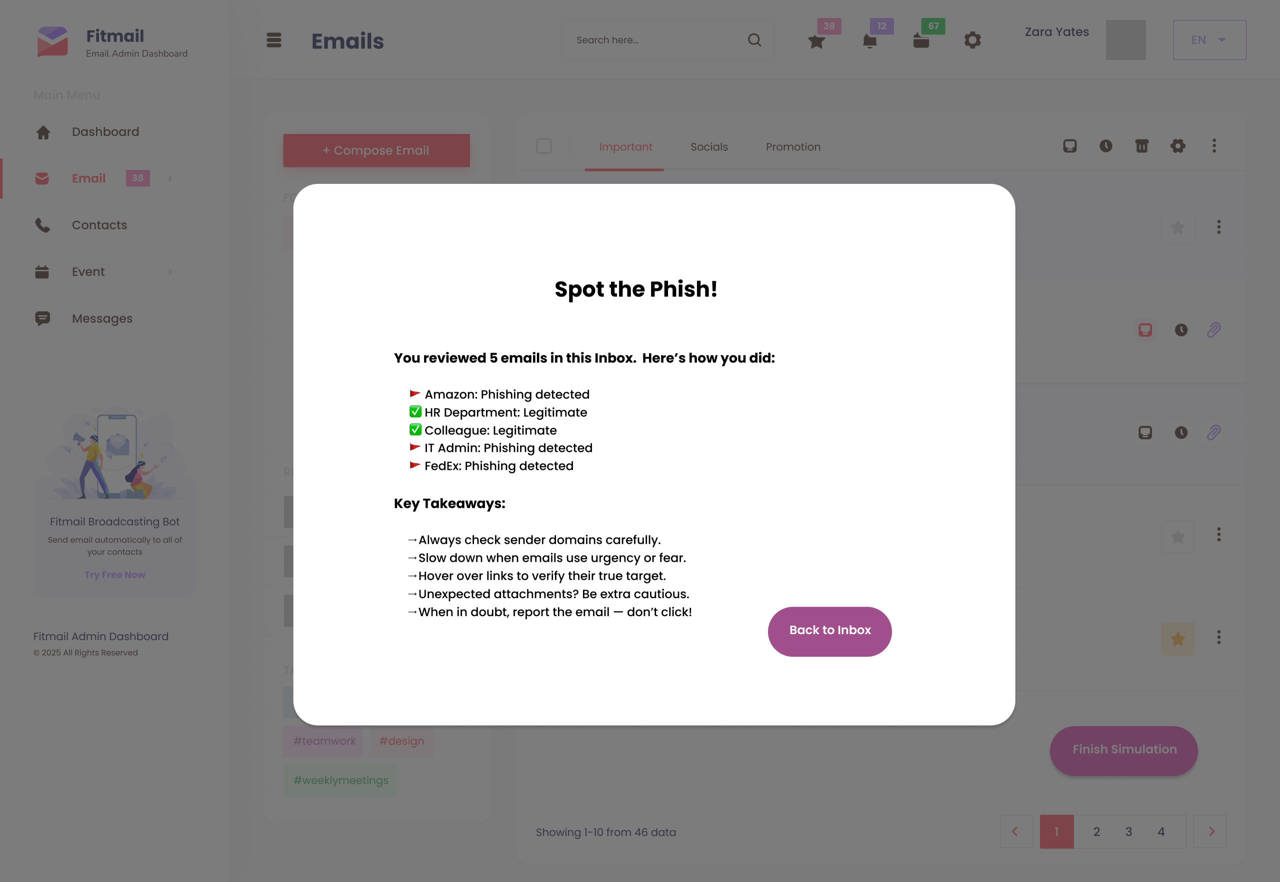 Designing this prototype reinforced the importance of aligning learning experience design with real-world user behaviors. Phishing detection is not just about cognitive knowledge; it requires visual scanning, pattern recognition, and intentional click behaviors (or cautious click habits) that are best built through realistic practice.