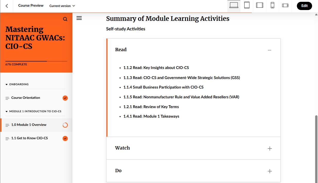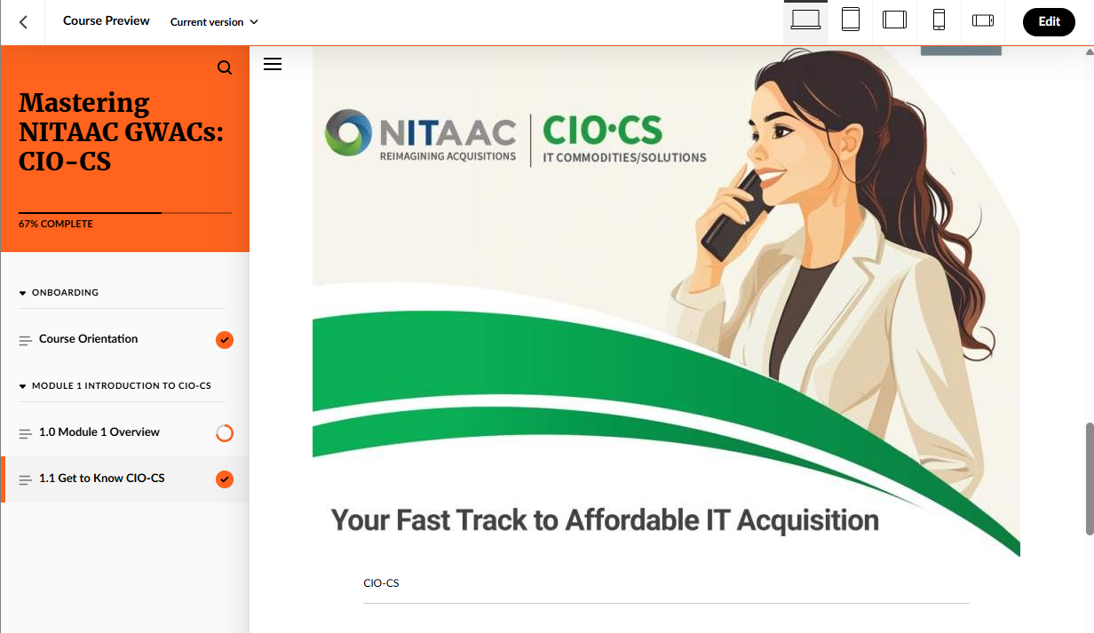 Screenshots from a federal IT procurement training prototype developed in Articulate Rise. Click on image to expand.